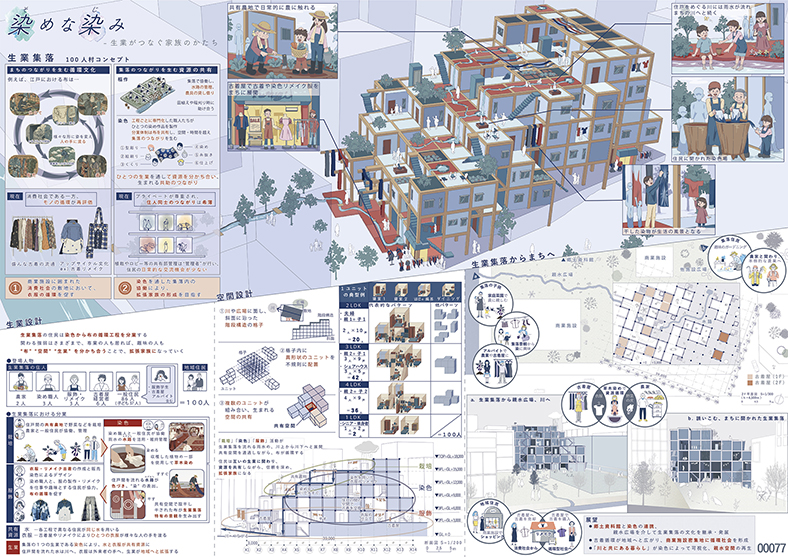 染めの営みが服をまわし,家族に,まちに,新たな縁をつなぐ生業集落.色づく水は集落を巡り,人々を誘い,結び,忘れられていた川の気配を呼び覚ます.
